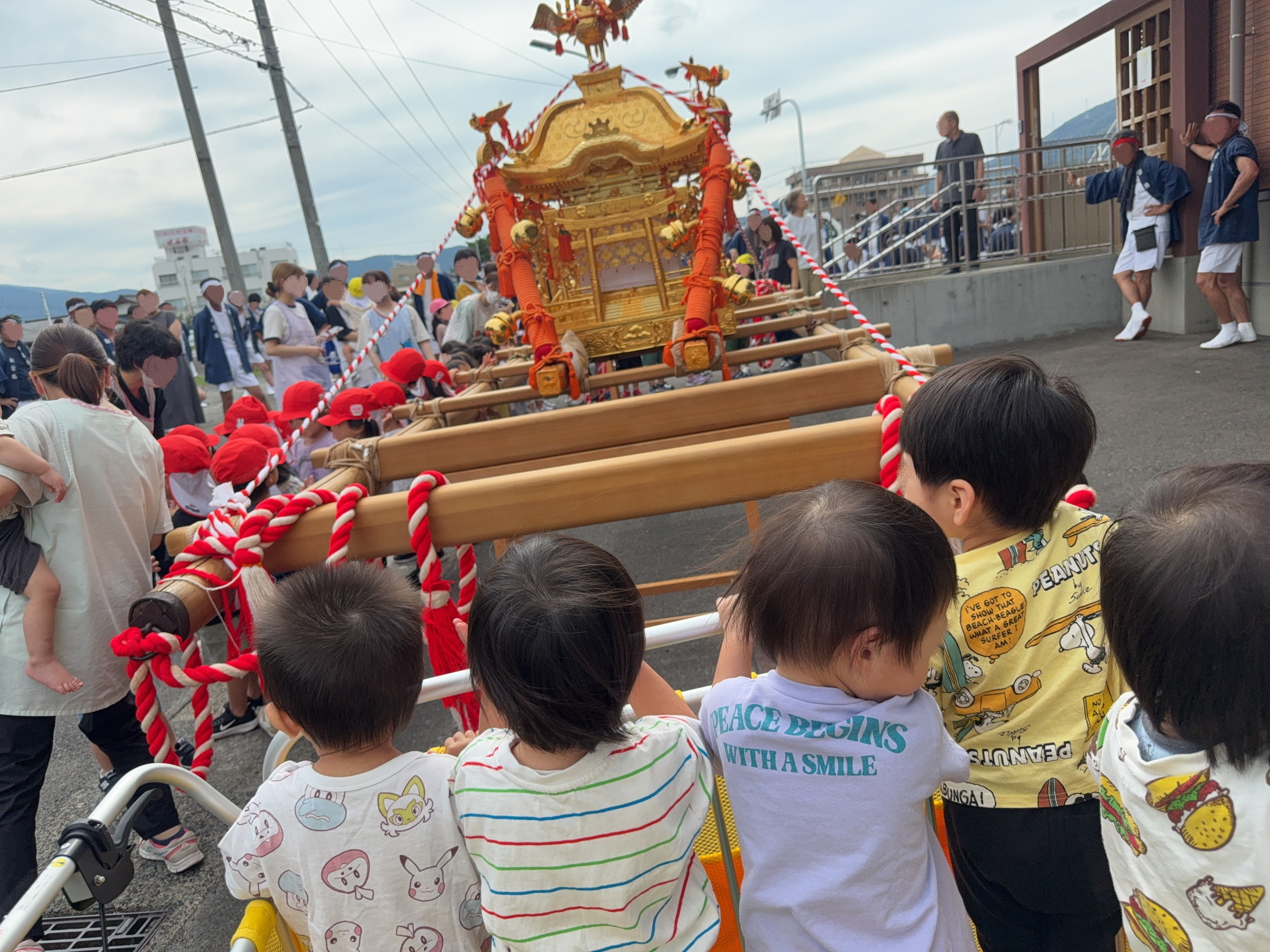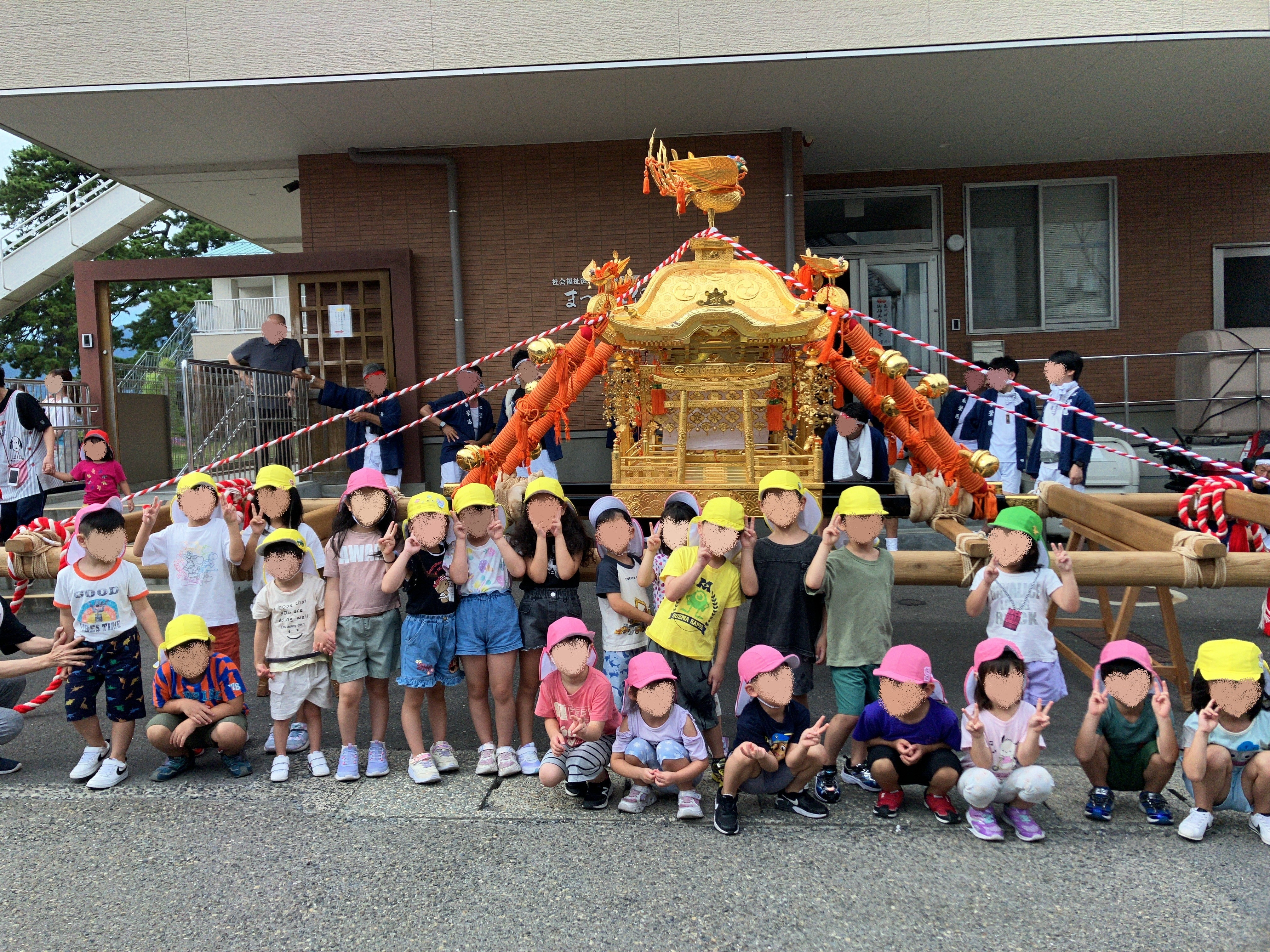 大勢の担い手の方々が来られ、近くで御神輿を見た子どもたちは大はしゃぎ。