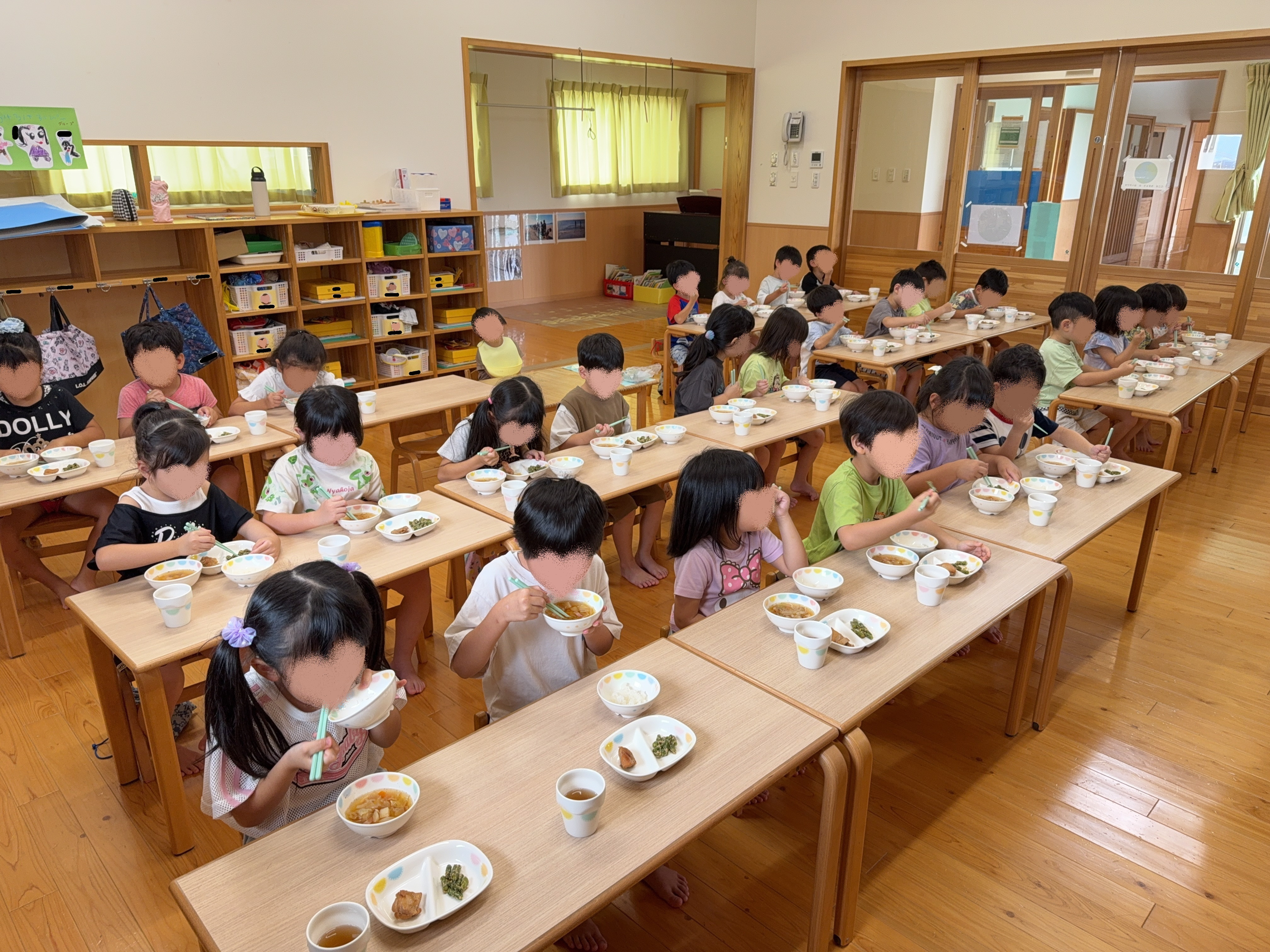 給食時にはいつも以上に気持ちのこもった「いただきます」「ごちそうさま」をお部屋に響き渡らせていました。