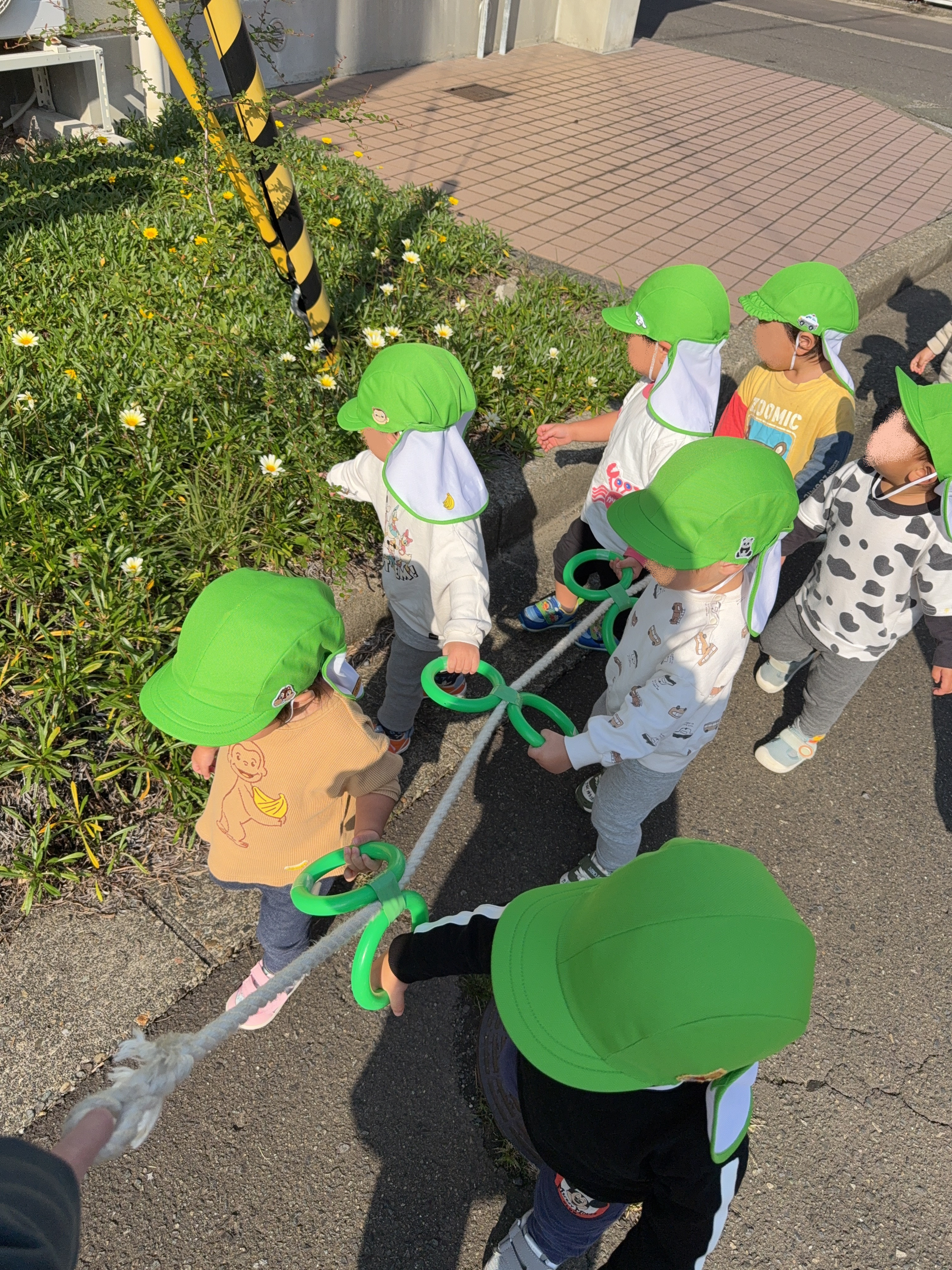 松栄町内のお散歩に行ったクラスや園庭や中庭など、それぞれお外遊びを満喫しました。