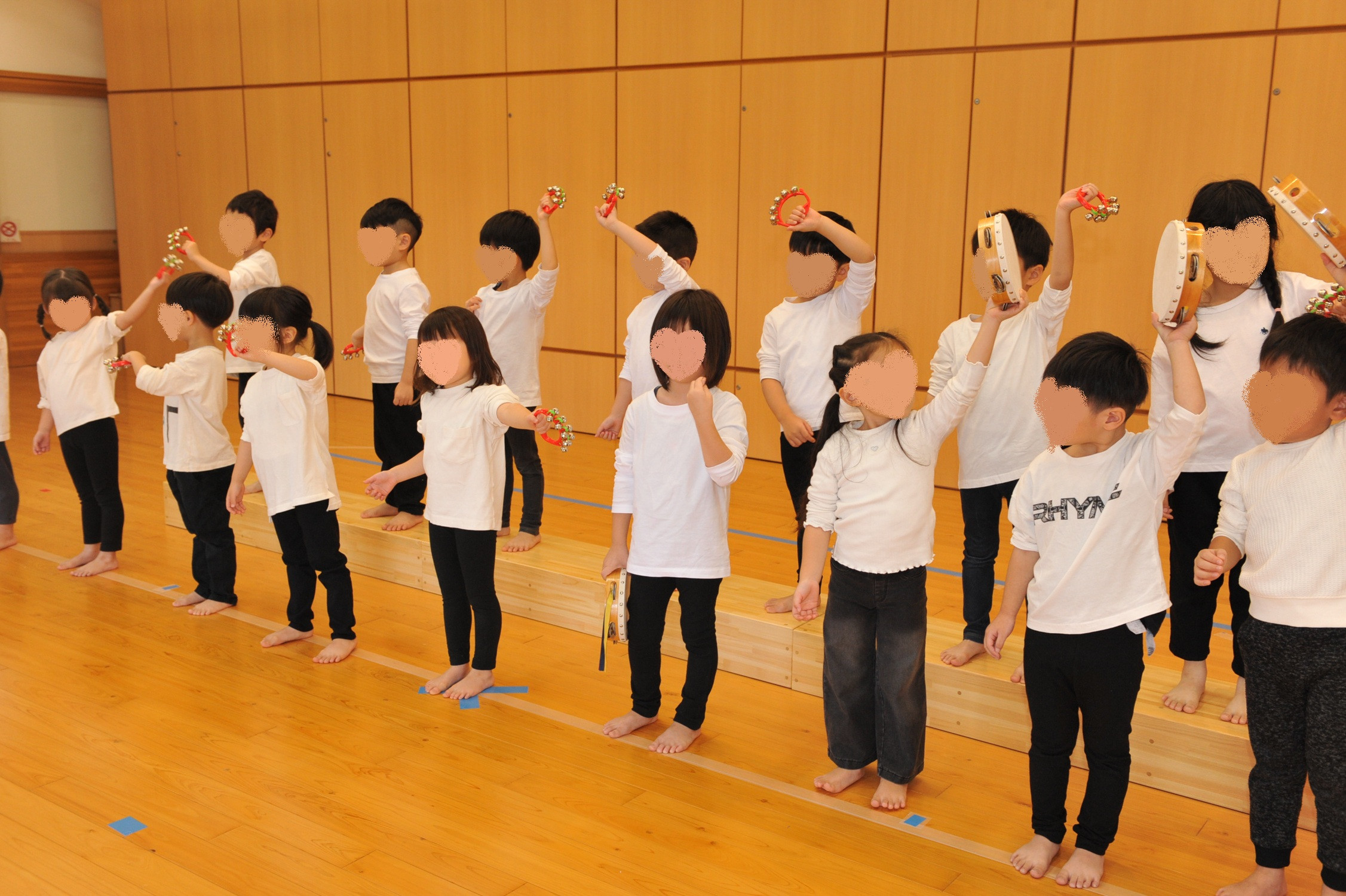 2日間にかけて4・5歳児の発表会を行いました。劇あそびや合唱、楽器あそび、鼓隊演奏などを披露しました。